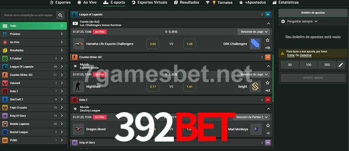 O 392bet oferece uma grande seleção de opções de apostas em e-sports com probabilidades competitivas